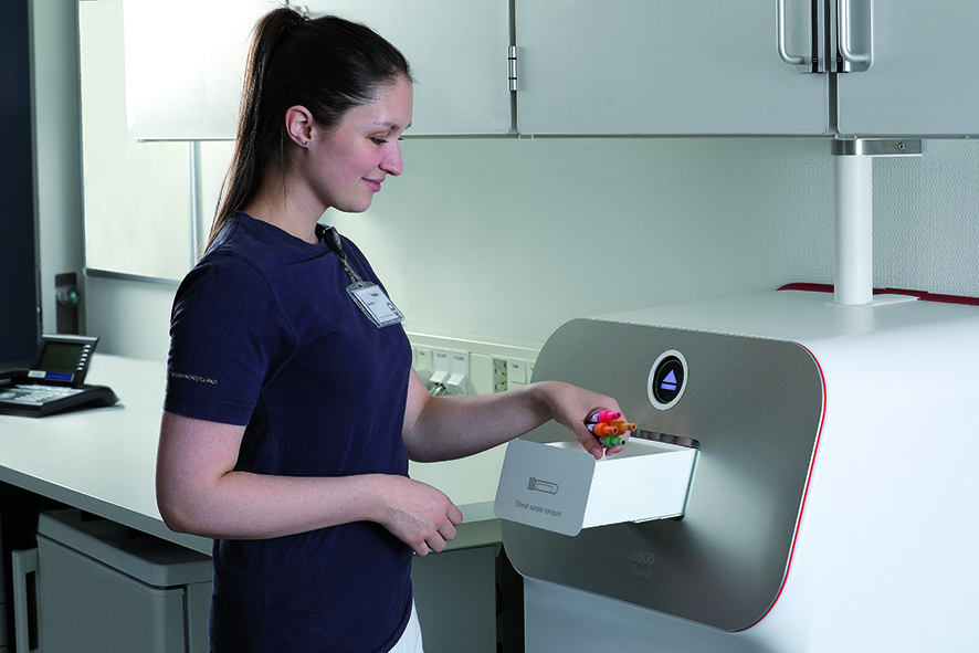 Dette er et veldig enkelt og brukervennlig system for deg som ønsker å flytte f.eks. et blodprøverør raskt og enkelt – fra prøven er tatt fra pasient til den er levert i laboratoriet. Prøverne sendes uemballert.